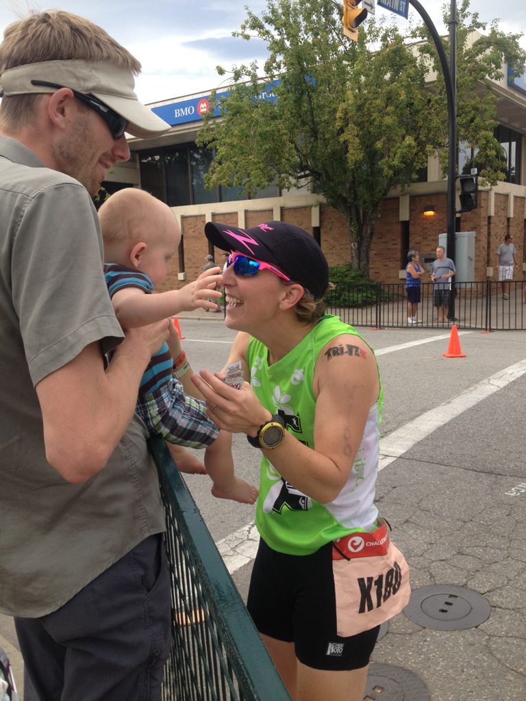 Meet Richelle Love! As her name suggests Richelle exudes a love for life, family, and fitness that is contagious. And she blends and balances these loves in her work as the General Manager/Part Owner of Tri-It Multisport, a store for all the latest and coolest swim-bike-run products located in Calgary, Alberta. Richelle and I have put on two women’s mountain bike clinics together in the last few years and it was mainly thanks to her amazing organizational skills! Richelle lives in Cochrane, Alberta with her husband, Jeff and 15-month old son, Rowan. Read on for a yet another unique perspective for my first athlete-mom interview of 2014! As you can also see from the photos below there is rarely a moment Richelle is not smiling when out enjoying her favourite activities!