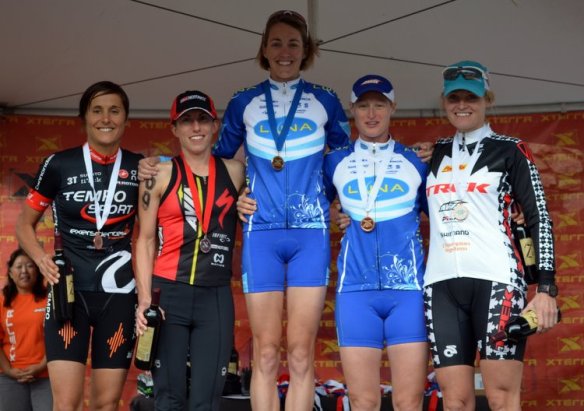 The podium L-R: Brandi Heisterman in 5th, Renata Bucher (3rd), Melanie McQuaid (1st), me (2nd), and Chantell Widney (5th). Zoe may be shy at times but she loves getting up on podiums any chance she gets! 🙂