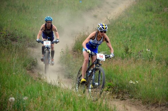 When I exited the water, even though I hadn’t felt too cold while swimming, my terrible circulation still left my fingers and toes numb. I struggled the entire long run up to transition to get the velcro of my wetsuit undone. Finally, just before reaching my bike I got it undone and could start to get my wetsuit off! Off on my bike, I was over 5 minutes down on swim superstar Christine Jeffrey back in action for the second half of the season, about 2min30 from Melanie and Suzie, and another 1min30 from Chantel Whidney, an ITU triathlete trying an Xterra for the first time.