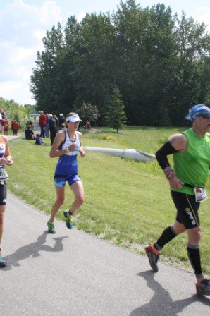 My athletic life hasn’t changed much since my daughter arrived, what has changed is how I approach training and what I’m training for. As her primary caregiver for most of my daughter’s life, like so many other athletic moms I’ve had to juggle training around family and work demands. I have a high demand executive-level job, life on my acreage requires a lot of work and in my spare time, I’m a volunteer firefighter/medic and train service dogs. I’ve got a lot on the go, and those passions take time away from training and family. When my daughter was younger, I would run the highway and driveway up to our acreage in 15 minute increments so I could check on her, or have her sit in a lawn chair and count my hill reps. Sometimes I combine my run in the evenings on a mountain trail with her riding her bike and the dogs running alongside me. She used to practice counting for math class by counting laps at the pool while I trained. My coach also lets my daughter join into club training swim nights so I don’t have to make the choice between “Mom’ing” and training. I always carry my cell phone with me to train, on days when she’s feeling a bit clingy, she calls me to chat. Sometimes we chat for 20 minutes of an hour-long bike ride.